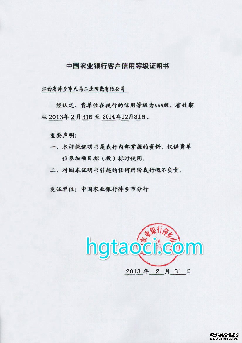 在中國農(nóng)業(yè)銀行江西省分行、萍鄉(xiāng)市分行的信用等級,多次被評為AAA級信用客戶。
